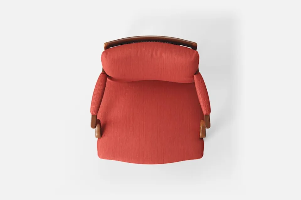 Med inspiration från 1700-talets nätta karmstolar formgav Josef Frank karmstol 969. För att skapa spänning i formgivningen valde Josef Frank ofta att blanda olika träslag och material. Karmstol 969 är gjord i mahogny med infällning av rotting i ryggen bakom den löstagbara kudden. Stolen formgavs 1939 och finns i två olika sitthöjder.