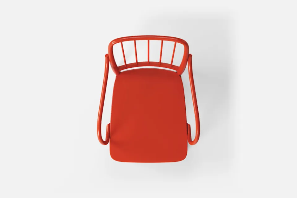 Josef Frank formgav flera böjträstolar under sent 1920-tal, varav några producerades för Thonet-Mundus AG i Wien. Böjträfåtöljen P4:s originalskiss har funnits bevarad i Svenskt Tenns arkiv och har troligtvis aldrig varit i produktion tidigare. Den har en genombruten rygg och detaljer av svarvade pinnar som gör att den inger ett lätt och luftigt intryck.