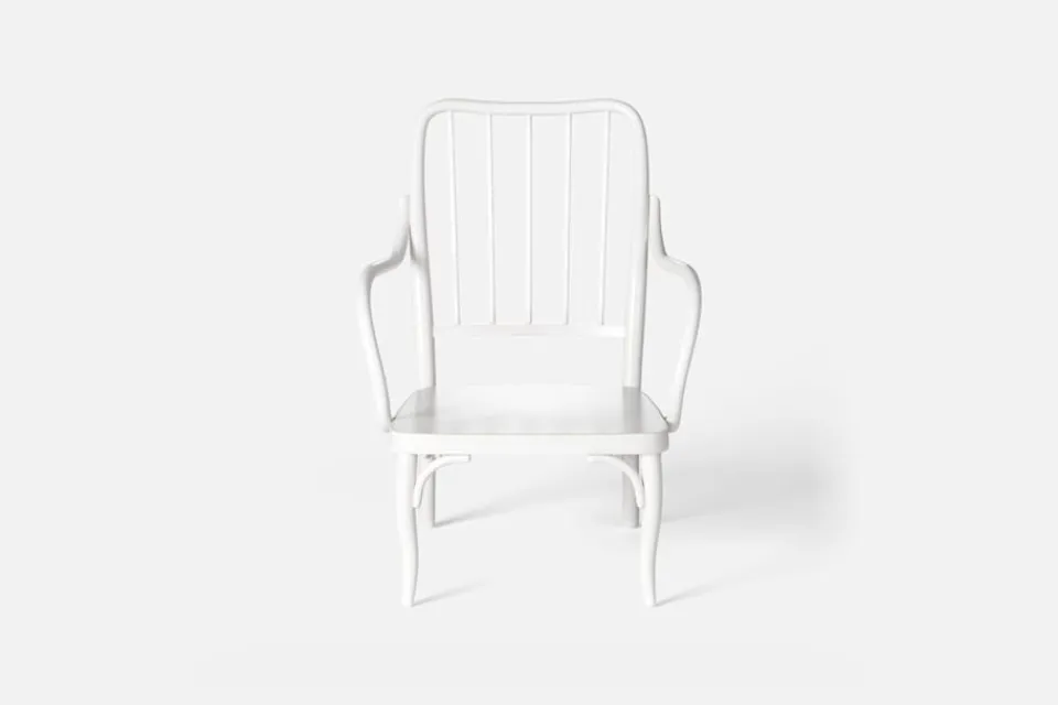 Josef Frank formgav flera böjträstolar under sent 1920-tal, varav några producerades för Thonet-Mundus AG i Wien. Böjträfåtöljen P4:s originalskiss har funnits bevarad i Svenskt Tenns arkiv och har troligtvis aldrig varit i produktion tidigare. Den har en genombruten rygg och detaljer av svarvade pinnar som gör att den inger ett lätt och luftigt intryck.