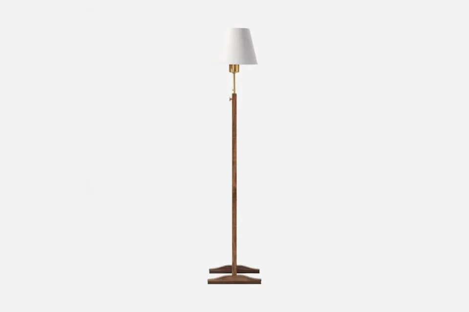 Golvlampan som kallas för ”Kryckan” formgavs 1952 av Josef Frank, som en utvecklad variant av en lampa som han formgivit redan på 1920-talet. Stativet i valnöt med mässingsdetaljer kan justeras efter behov.