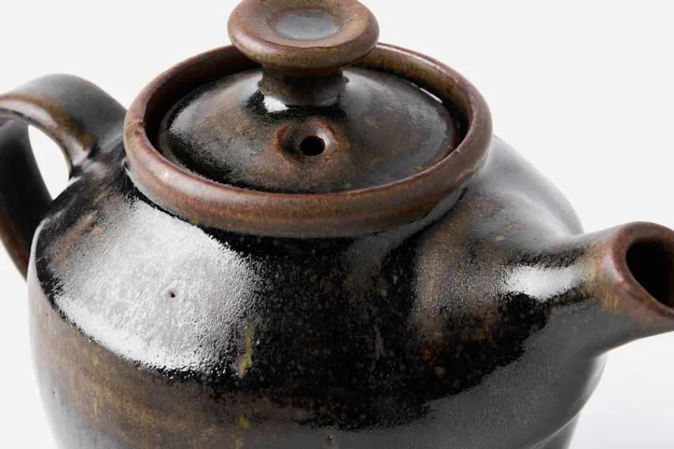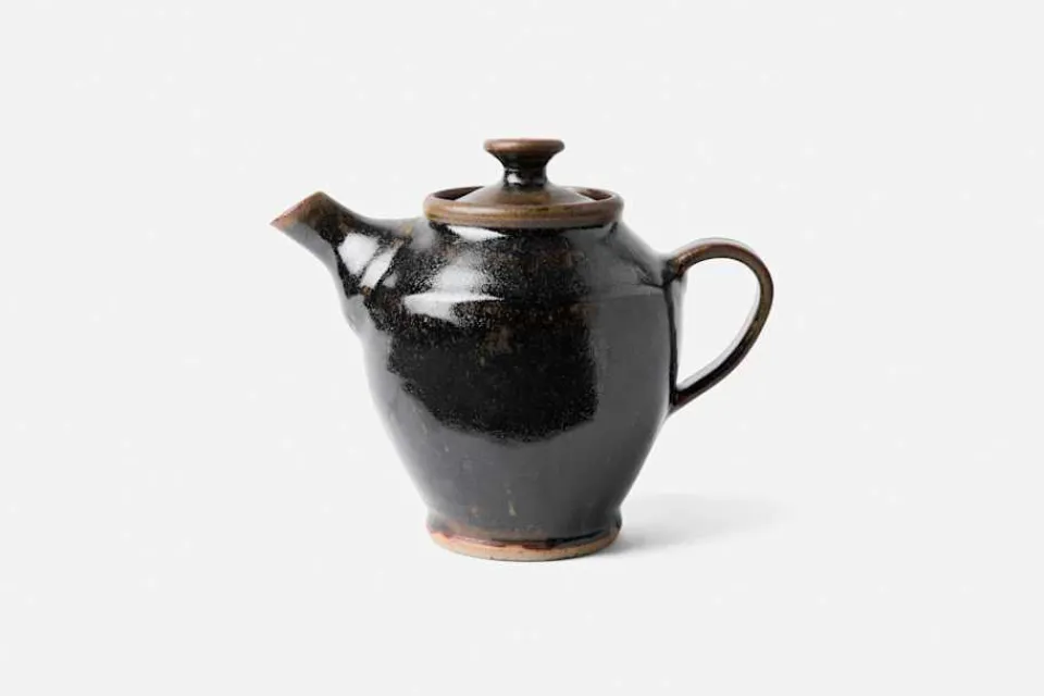 Tidlös tekanna i svart temmoku, formgiven och tillverkad för hand av keramikern Calle Forsberg i verkstaden i Saltsjö-Boo. Tekannan rymmer 1 liter.