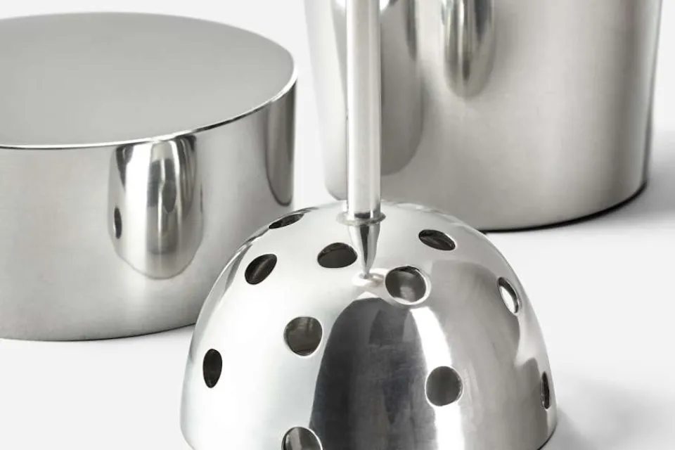 Klassisk cocktailshaker i funktionalistisk stil, framtagen från en förlaga ur Svenskt Tenns arkiv och formgiven under 1930-talets början.