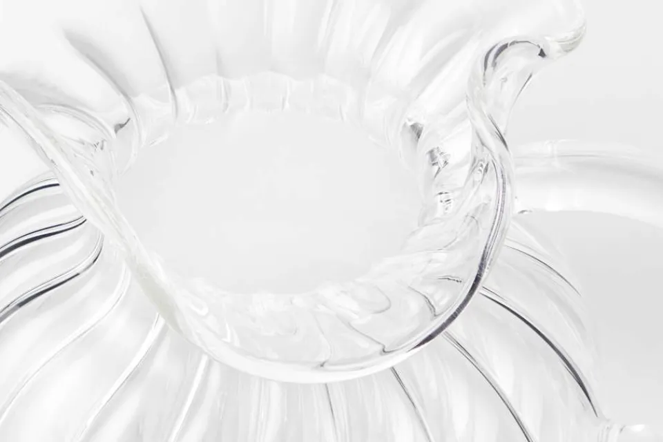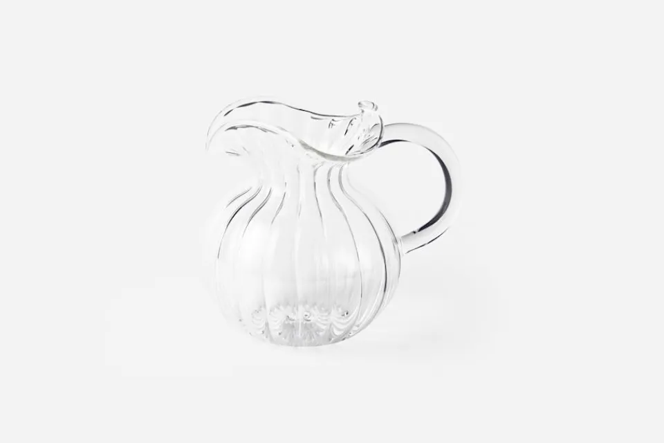 Den skira glaskaraffen Torcello från italienska Tuttoattaccato är hantverksmässigt tillverkad i Veneto. Varje karaff blåses för hand helt utan formar, vilket gör varje exemplar unikt i sitt slag. En vacker karaff som tillför en tidlös, italiensk charm till det dukade bordet.