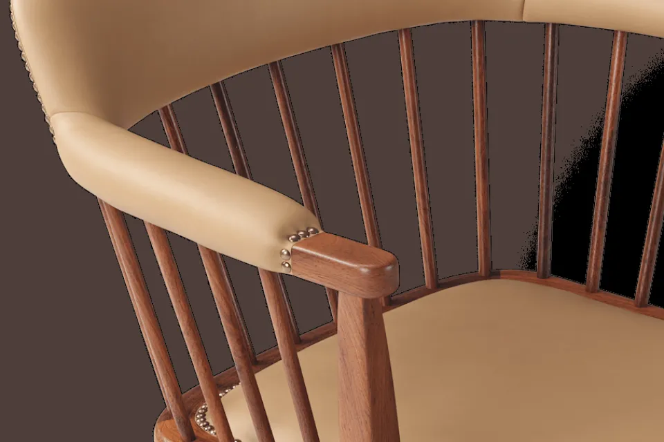 I tidskriften Obs! 1954, skrev arkitekten och formgivaren Josef Frank: ”Den som betraktar en stol som en sittmöbel bara för att sitta på kommer alltid att sitta obekvämt. Man sitter på en stol för att göra något annat, för att arbeta eller äta vid ett bord, och man lämnar stolen så fort man kan. En stol är bekväm för sitt ändamål om man inte tröttnar för fort, det vill säga om stolen anpassar sig efter alla ställningar som man vill inta. Själv sätter jag mig överhuvudtaget aldrig på en stol, som är formad för en enda ställning. Jag vill ha möjlighet att sitta på olika sätt vid olika tillfällen och olika tider på dagen.” Karmstol 789 formgavs av Josef Frank för Svenskt Tenn 1938. Dess genombrutna stolsrygg är skapad i enlighet med tankarna om att inte föra in avgränsande hinder och väggar i interiören. Formen är typisk för tidig viktoriansk epok och kallas i England allmänt för ”Captain’s chair”. Det robusta i den traditionella kaptensstolen motverkas dock av benens och ryggens svängda linjer och underredets H-kryss. Stolen nylanserades på Svenskt Tenn 2019 och tillverkas hantverksmässigt hos Gemla, Sveriges äldsta möbelfabrik.