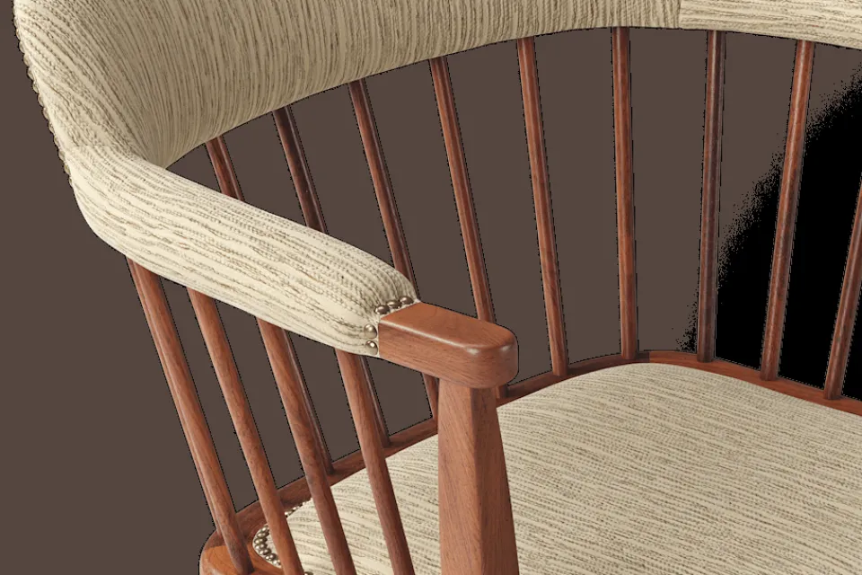 I tidskriften Obs! 1954, skrev arkitekten och formgivaren Josef Frank: ”Den som betraktar en stol som en sittmöbel bara för att sitta på kommer alltid att sitta obekvämt. Man sitter på en stol för att göra något annat, för att arbeta eller äta vid ett bord, och man lämnar stolen så fort man kan. En stol är bekväm för sitt ändamål om man inte tröttnar för fort, det vill säga om stolen anpassar sig efter alla ställningar som man vill inta. Själv sätter jag mig överhuvudtaget aldrig på en stol, som är formad för en enda ställning. Jag vill ha möjlighet att sitta på olika sätt vid olika tillfällen och olika tider på dagen.” Karmstol 789 formgavs av Josef Frank för Svenskt Tenn 1938. Dess genombrutna stolsrygg är skapad i enlighet med tankarna om att inte föra in avgränsande hinder och väggar i interiören. Formen är typisk för tidig viktoriansk epok och kallas i England allmänt för ”Captain’s chair”. Det robusta i den traditionella kaptensstolen motverkas dock av benens och ryggens svängda linjer och underredets H-kryss. Stolen nylanserades på Svenskt Tenn 2019 och tillverkas hantverksmässigt hos Gemla, Sveriges äldsta möbelfabrik.