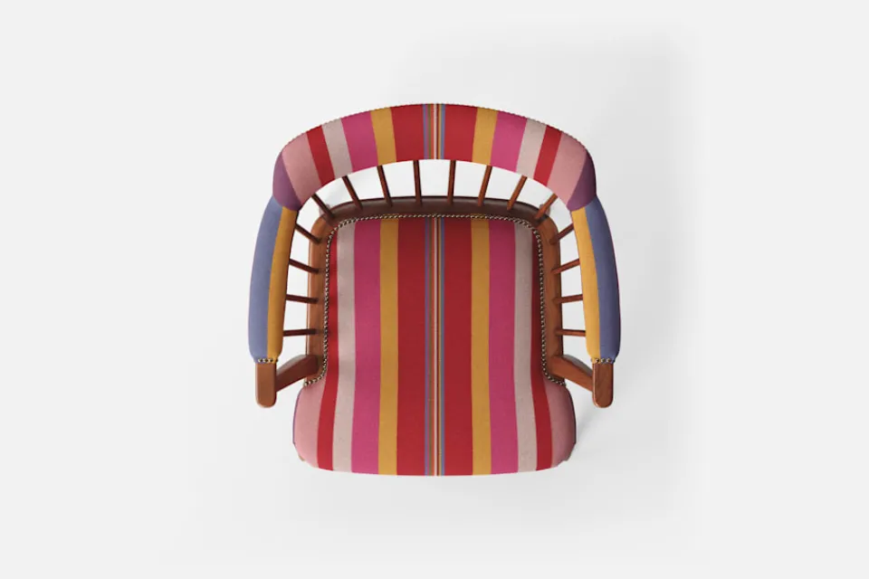 I tidskriften Obs! 1954, skrev arkitekten och formgivaren Josef Frank: ”Den som betraktar en stol som en sittmöbel bara för att sitta på kommer alltid att sitta obekvämt. Man sitter på en stol för att göra något annat, för att arbeta eller äta vid ett bord, och man lämnar stolen så fort man kan. En stol är bekväm för sitt ändamål om man inte tröttnar för fort, det vill säga om stolen anpassar sig efter alla ställningar som man vill inta. Själv sätter jag mig överhuvudtaget aldrig på en stol, som är formad för en enda ställning. Jag vill ha möjlighet att sitta på olika sätt vid olika tillfällen och olika tider på dagen.” Karmstol 789 formgavs av Josef Frank för Svenskt Tenn 1938. Dess genombrutna stolsrygg är skapad i enlighet med tankarna om att inte föra in avgränsande hinder och väggar i interiören. Formen är typisk för tidig viktoriansk epok och kallas i England allmänt för ”Captain’s chair”. Det robusta i den traditionella kaptensstolen motverkas dock av benens och ryggens svängda linjer och underredets H-kryss. Stolen nylanserades på Svenskt Tenn 2019 och tillverkas hantverksmässigt hos Gemla, Sveriges äldsta möbelfabrik.