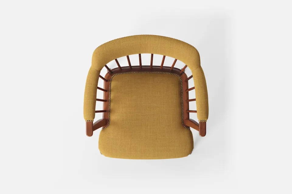 I tidskriften Obs! 1954, skrev arkitekten och formgivaren Josef Frank: ”Den som betraktar en stol som en sittmöbel bara för att sitta på kommer alltid att sitta obekvämt. Man sitter på en stol för att göra något annat, för att arbeta eller äta vid ett bord, och man lämnar stolen så fort man kan. En stol är bekväm för sitt ändamål om man inte tröttnar för fort, det vill säga om stolen anpassar sig efter alla ställningar som man vill inta. Själv sätter jag mig överhuvudtaget aldrig på en stol, som är formad för en enda ställning. Jag vill ha möjlighet att sitta på olika sätt vid olika tillfällen och olika tider på dagen.” Karmstol 789 formgavs av Josef Frank för Svenskt Tenn 1938. Dess genombrutna stolsrygg är skapad i enlighet med tankarna om att inte föra in avgränsande hinder och väggar i interiören. Formen är typisk för tidig viktoriansk epok och kallas i England allmänt för ”Captain’s chair”. Det robusta i den traditionella kaptensstolen motverkas dock av benens och ryggens svängda linjer och underredets H-kryss. Stolen nylanserades på Svenskt Tenn 2019 och tillverkas hantverksmässigt hos Gemla, Sveriges äldsta möbelfabrik.