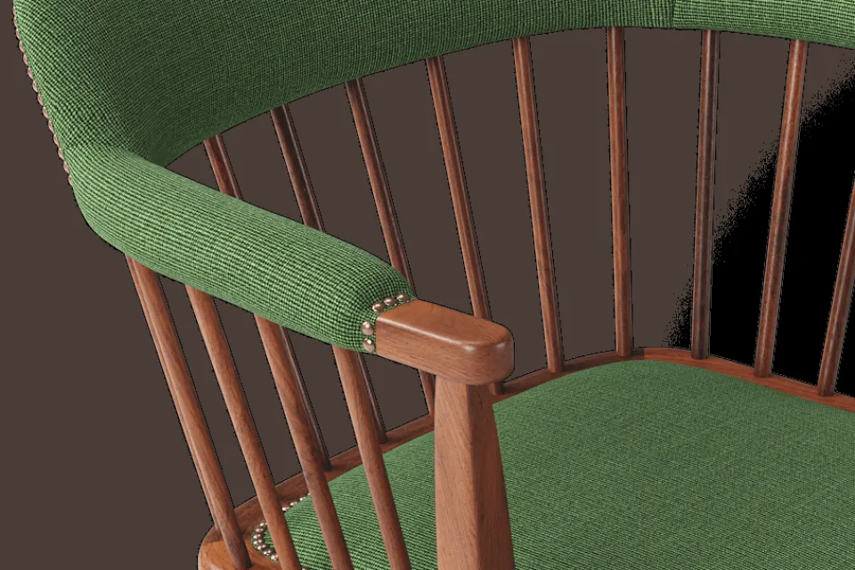 I tidskriften Obs! 1954, skrev arkitekten och formgivaren Josef Frank: ”Den som betraktar en stol som en sittmöbel bara för att sitta på kommer alltid att sitta obekvämt. Man sitter på en stol för att göra något annat, för att arbeta eller äta vid ett bord, och man lämnar stolen så fort man kan. En stol är bekväm för sitt ändamål om man inte tröttnar för fort, det vill säga om stolen anpassar sig efter alla ställningar som man vill inta. Själv sätter jag mig överhuvudtaget aldrig på en stol, som är formad för en enda ställning. Jag vill ha möjlighet att sitta på olika sätt vid olika tillfällen och olika tider på dagen.” Karmstol 789 formgavs av Josef Frank för Svenskt Tenn 1938. Dess genombrutna stolsrygg är skapad i enlighet med tankarna om att inte föra in avgränsande hinder och väggar i interiören. Formen är typisk för tidig viktoriansk epok och kallas i England allmänt för ”Captain’s chair”. Det robusta i den traditionella kaptensstolen motverkas dock av benens och ryggens svängda linjer och underredets H-kryss. Stolen nylanserades på Svenskt Tenn 2019 och tillverkas hantverksmässigt hos Gemla, Sveriges äldsta möbelfabrik.