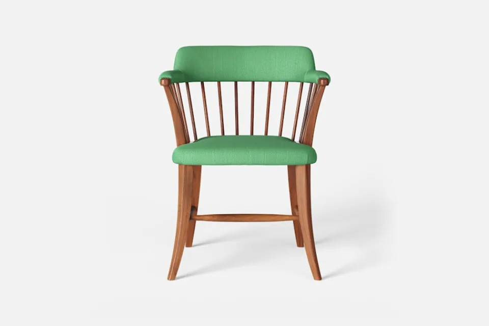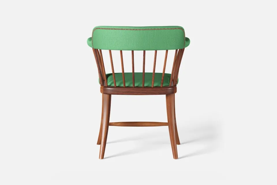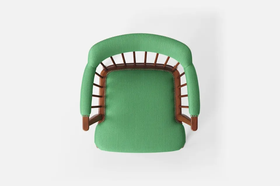 I tidskriften Obs! 1954, skrev arkitekten och formgivaren Josef Frank: ”Den som betraktar en stol som en sittmöbel bara för att sitta på kommer alltid att sitta obekvämt. Man sitter på en stol för att göra något annat, för att arbeta eller äta vid ett bord, och man lämnar stolen så fort man kan. En stol är bekväm för sitt ändamål om man inte tröttnar för fort, det vill säga om stolen anpassar sig efter alla ställningar som man vill inta. Själv sätter jag mig överhuvudtaget aldrig på en stol, som är formad för en enda ställning. Jag vill ha möjlighet att sitta på olika sätt vid olika tillfällen och olika tider på dagen.” Karmstol 789 formgavs av Josef Frank för Svenskt Tenn 1938. Dess genombrutna stolsrygg är skapad i enlighet med tankarna om att inte föra in avgränsande hinder och väggar i interiören. Formen är typisk för tidig viktoriansk epok och kallas i England allmänt för ”Captain’s chair”. Det robusta i den traditionella kaptensstolen motverkas dock av benens och ryggens svängda linjer och underredets H-kryss. Stolen nylanserades på Svenskt Tenn 2019 och tillverkas hantverksmässigt hos Gemla, Sveriges äldsta möbelfabrik.