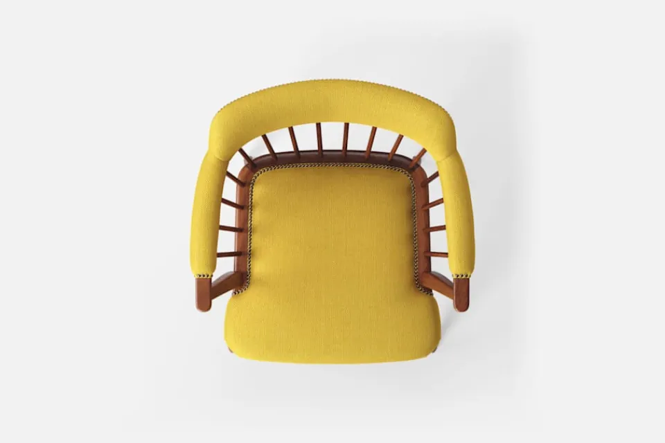 I tidskriften Obs! 1954, skrev arkitekten och formgivaren Josef Frank: ”Den som betraktar en stol som en sittmöbel bara för att sitta på kommer alltid att sitta obekvämt. Man sitter på en stol för att göra något annat, för att arbeta eller äta vid ett bord, och man lämnar stolen så fort man kan. En stol är bekväm för sitt ändamål om man inte tröttnar för fort, det vill säga om stolen anpassar sig efter alla ställningar som man vill inta. Själv sätter jag mig överhuvudtaget aldrig på en stol, som är formad för en enda ställning. Jag vill ha möjlighet att sitta på olika sätt vid olika tillfällen och olika tider på dagen.” Karmstol 789 formgavs av Josef Frank för Svenskt Tenn 1938. Dess genombrutna stolsrygg är skapad i enlighet med tankarna om att inte föra in avgränsande hinder och väggar i interiören. Formen är typisk för tidig viktoriansk epok och kallas i England allmänt för ”Captain’s chair”. Det robusta i den traditionella kaptensstolen motverkas dock av benens och ryggens svängda linjer och underredets H-kryss. Stolen nylanserades på Svenskt Tenn 2019 och tillverkas hantverksmässigt hos Gemla, Sveriges äldsta möbelfabrik.