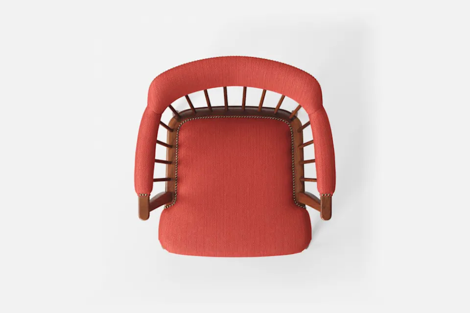 I tidskriften Obs! 1954, skrev arkitekten och formgivaren Josef Frank: ”Den som betraktar en stol som en sittmöbel bara för att sitta på kommer alltid att sitta obekvämt. Man sitter på en stol för att göra något annat, för att arbeta eller äta vid ett bord, och man lämnar stolen så fort man kan. En stol är bekväm för sitt ändamål om man inte tröttnar för fort, det vill säga om stolen anpassar sig efter alla ställningar som man vill inta. Själv sätter jag mig överhuvudtaget aldrig på en stol, som är formad för en enda ställning. Jag vill ha möjlighet att sitta på olika sätt vid olika tillfällen och olika tider på dagen.” Karmstol 789 formgavs av Josef Frank för Svenskt Tenn 1938. Dess genombrutna stolsrygg är skapad i enlighet med tankarna om att inte föra in avgränsande hinder och väggar i interiören. Formen är typisk för tidig viktoriansk epok och kallas i England allmänt för ”Captain’s chair”. Det robusta i den traditionella kaptensstolen motverkas dock av benens och ryggens svängda linjer och underredets H-kryss. Stolen nylanserades på Svenskt Tenn 2019 och tillverkas hantverksmässigt hos Gemla, Sveriges äldsta möbelfabrik.