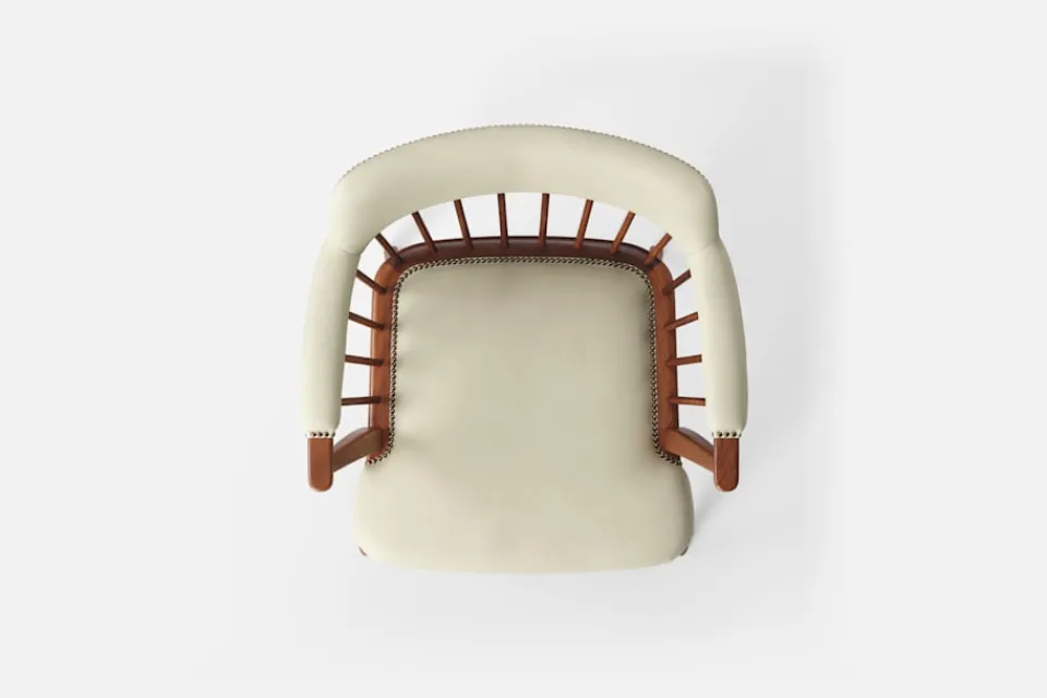 I tidskriften Obs! 1954, skrev arkitekten och formgivaren Josef Frank: ”Den som betraktar en stol som en sittmöbel bara för att sitta på kommer alltid att sitta obekvämt. Man sitter på en stol för att göra något annat, för att arbeta eller äta vid ett bord, och man lämnar stolen så fort man kan. En stol är bekväm för sitt ändamål om man inte tröttnar för fort, det vill säga om stolen anpassar sig efter alla ställningar som man vill inta. Själv sätter jag mig överhuvudtaget aldrig på en stol, som är formad för en enda ställning. Jag vill ha möjlighet att sitta på olika sätt vid olika tillfällen och olika tider på dagen.” Karmstol 789 formgavs av Josef Frank för Svenskt Tenn 1938. Dess genombrutna stolsrygg är skapad i enlighet med tankarna om att inte föra in avgränsande hinder och väggar i interiören. Formen är typisk för tidig viktoriansk epok och kallas i England allmänt för ”Captain’s chair”. Det robusta i den traditionella kaptensstolen motverkas dock av benens och ryggens svängda linjer och underredets H-kryss. Stolen nylanserades på Svenskt Tenn 2019 och tillverkas hantverksmässigt hos Gemla, Sveriges äldsta möbelfabrik.