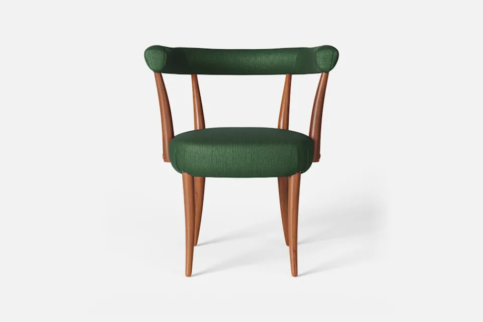 Josef Frank formgav Karmstol 966 för Svenskt Tenn 1938. Stolen visades i samband med Världsutställningen i New York 1939, där Svenskt Tenn gjorde stor succé med sin nytänkande formgivning. Den hästskoformade ryggbrickan och de utsvängda benen vittnar om en viss inspiration från antikens klismos- och sullastolar. Karmstolen finns i Estrid Ericsons inredning på Tolvekarna 1952 klädd i leopardmönstrad textil.