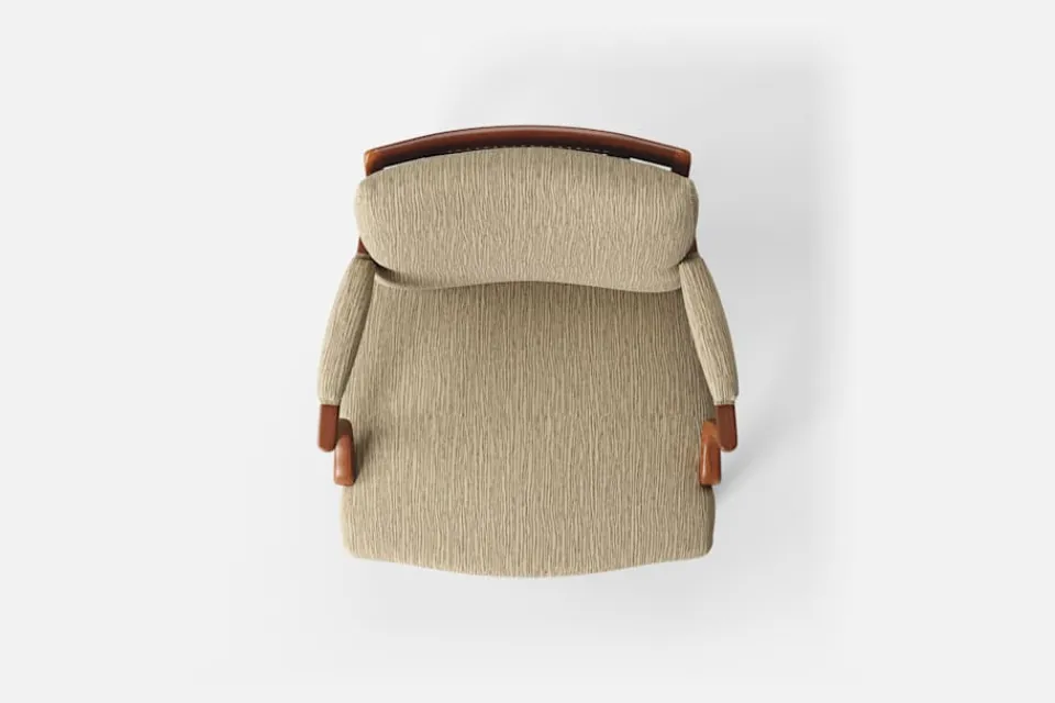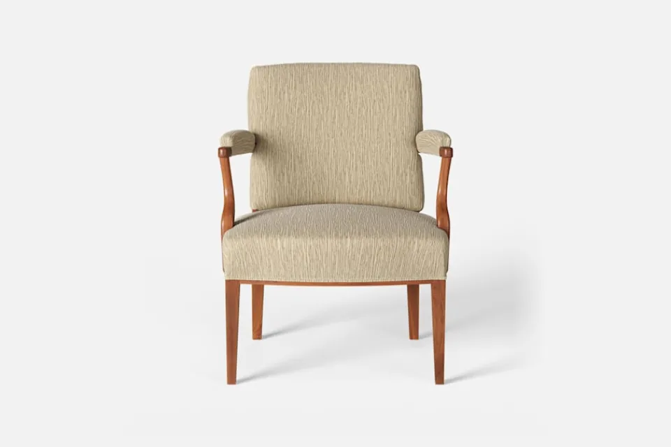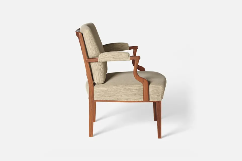 Med inspiration från 1700-talets nätta karmstolar formgav Josef Frank karmstol 969. För att skapa spänning i formgivningen valde Josef Frank ofta att blanda olika träslag och material. Karmstol 969 är gjord i mahogny med infällning av rotting i ryggen bakom den löstagbara kudden. Stolen formgavs 1939 och finns i två olika sitthöjder.