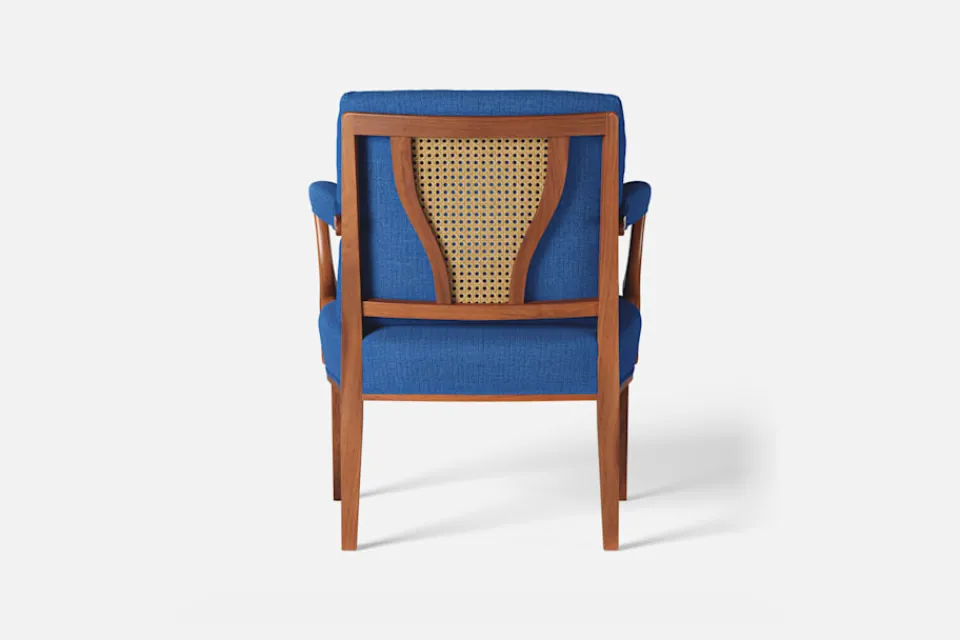 Med inspiration från 1700-talets nätta karmstolar formgav Josef Frank karmstol 969. För att skapa spänning i formgivningen valde Josef Frank ofta att blanda olika träslag och material. Karmstol 969 är gjord i mahogny med infällning av rotting i ryggen bakom den löstagbara kudden. Stolen formgavs 1939 och finns i två olika sitthöjder.