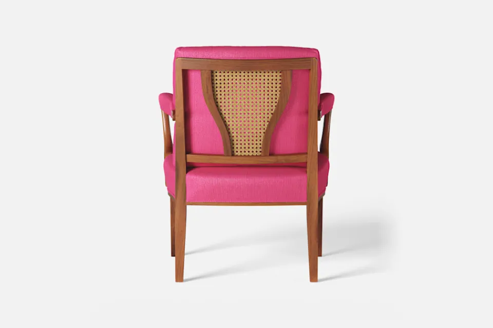 Med inspiration från 1700-talets nätta karmstolar formgav Josef Frank karmstol 969. För att skapa spänning i formgivningen valde Josef Frank ofta att blanda olika träslag och material. Karmstol 969 är gjord i mahogny med infällning av rotting i ryggen bakom den löstagbara kudden. Stolen formgavs 1939 och finns i två olika sitthöjder.