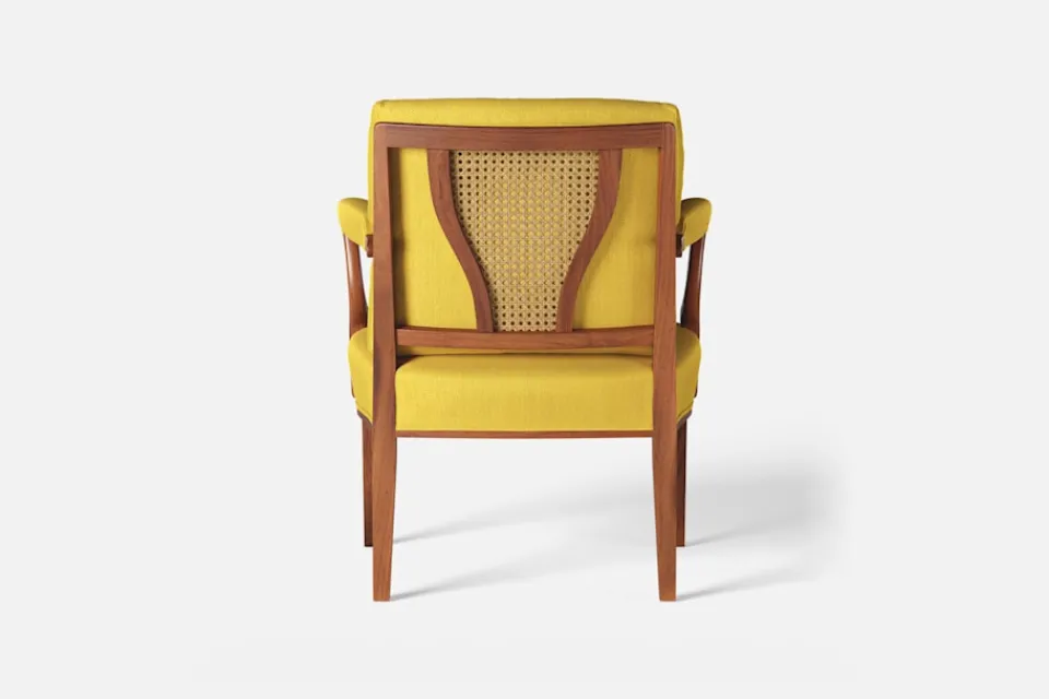 Med inspiration från 1700-talets nätta karmstolar formgav Josef Frank karmstol 969. För att skapa spänning i formgivningen valde Josef Frank ofta att blanda olika träslag och material. Karmstol 969 är gjord i mahogny med infällning av rotting i ryggen bakom den löstagbara kudden. Stolen formgavs 1939 och finns i två olika sitthöjder.