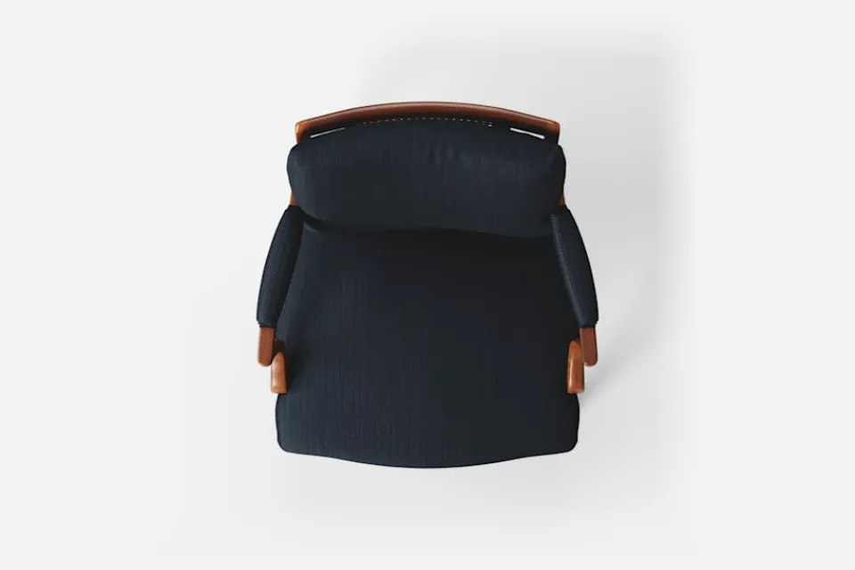 Med inspiration från 1700-talets nätta karmstolar formgav Josef Frank karmstol 969. För att skapa spänning i formgivningen valde Josef Frank ofta att blanda olika träslag och material. Karmstol 969 är gjord i mahogny med infällning av rotting i ryggen bakom den löstagbara kudden. Stolen formgavs 1939 och finns i två olika sitthöjder.