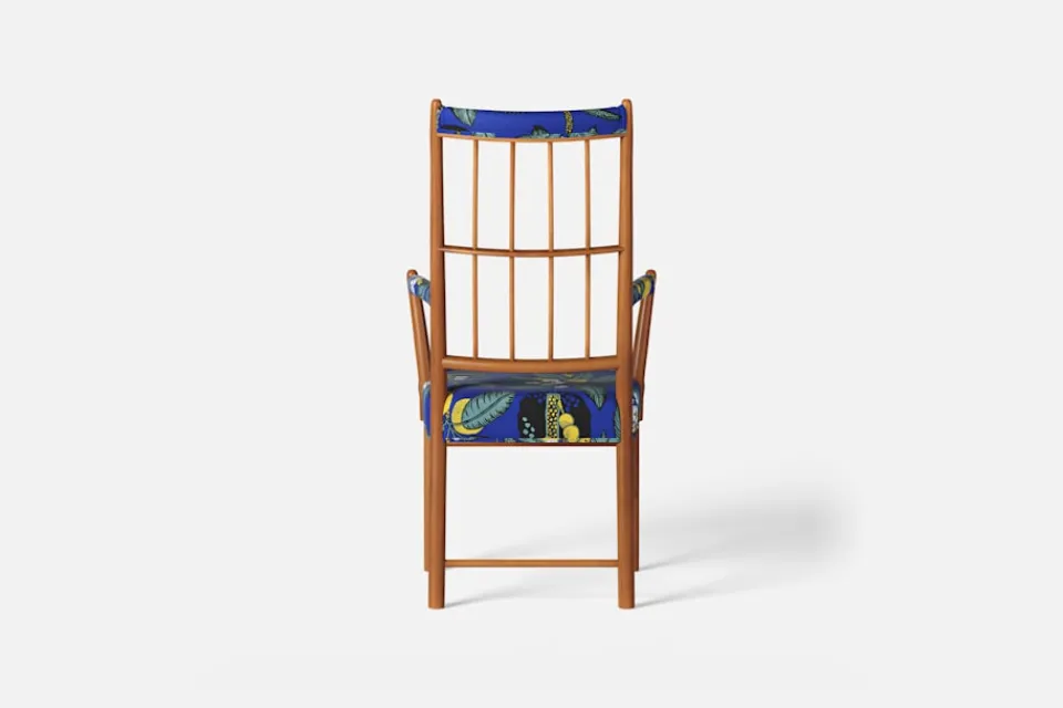 Karmstol 652 formgav Josef Frank 1936, och tre år senare användes den i interiören vid Golden Gate-utställningen i San Fransisco. Den eleganta karmstolen har en hög genombruten rygg av runda svarvade pinnar sammanbundna av en tvärslå, vilket bildar ett geometriskt luftigt mönster. För att skapa en spänning i formen valde Josef Frank ofta att blanda olika träslag och material.