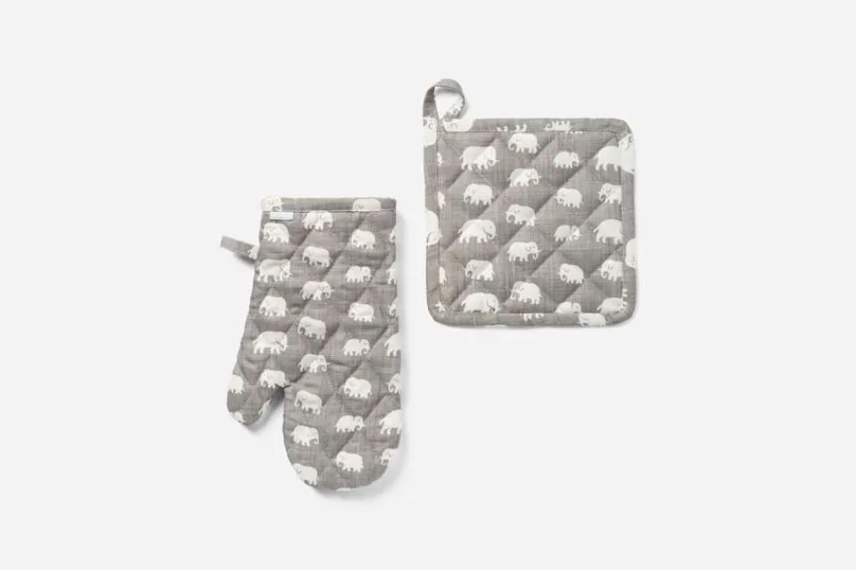 Svenskt Tenns grytlapp smyckar köket med vackra mönster av Josef Frank och Estrid Ericson. Praktisk för varma grytor och ett fint inslag i köksinteriören. Denna klassiska grytlapp pryds av mönstret Elefant. Svenskt Tenns grundare Estrid Ericson reste mycket till olika platser runt om i världen. Hon letade alltid efter vackra föremål, textilier och souvenirer att ta hem och sälja i butiken på Strandvägen. Det var efter en förlaga från Belgiska Kongo som hon formgav mönstret med de små elefanterna. Svenskt Tenn tryckte textil Elefant för första gången i slutet av 1930-talet.