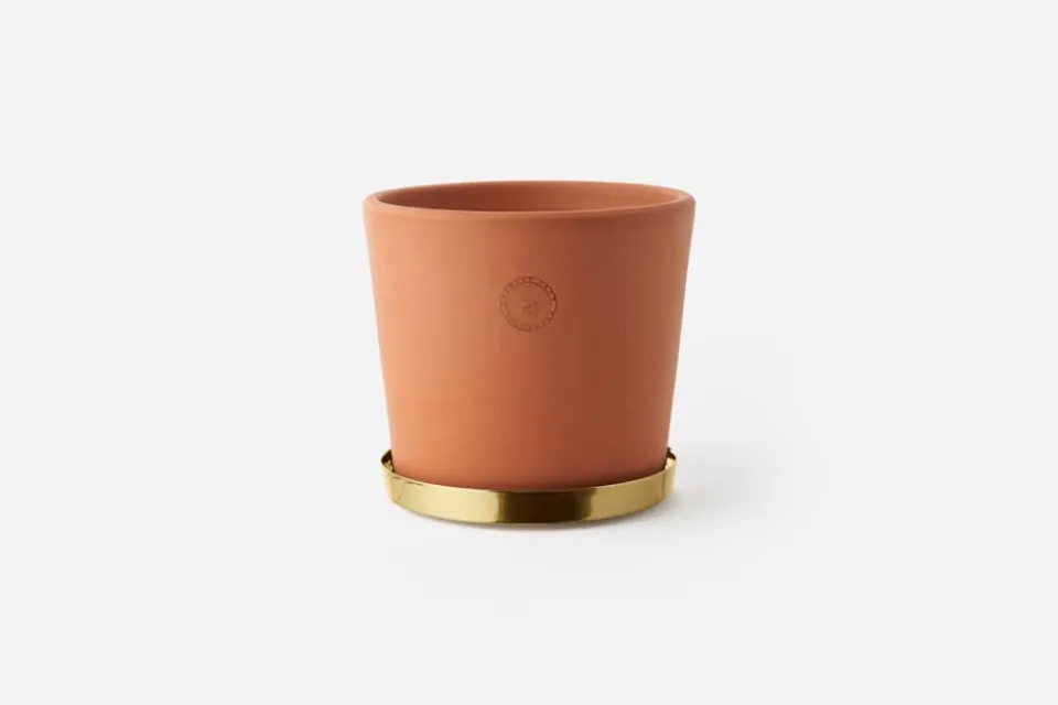 Terrakotta är ett levande material som har förmågan att avge och absorbera värme och fukt. Materialets egenskaper gör att avlagringar och beläggningar skapas på ytan med tiden: en naturlig process som är karaktäristiskt för terrakottakrukan. Denna kruka används tillsammans med krukfatet som är 16,5 cm i diameter. Fatet säljs separat.