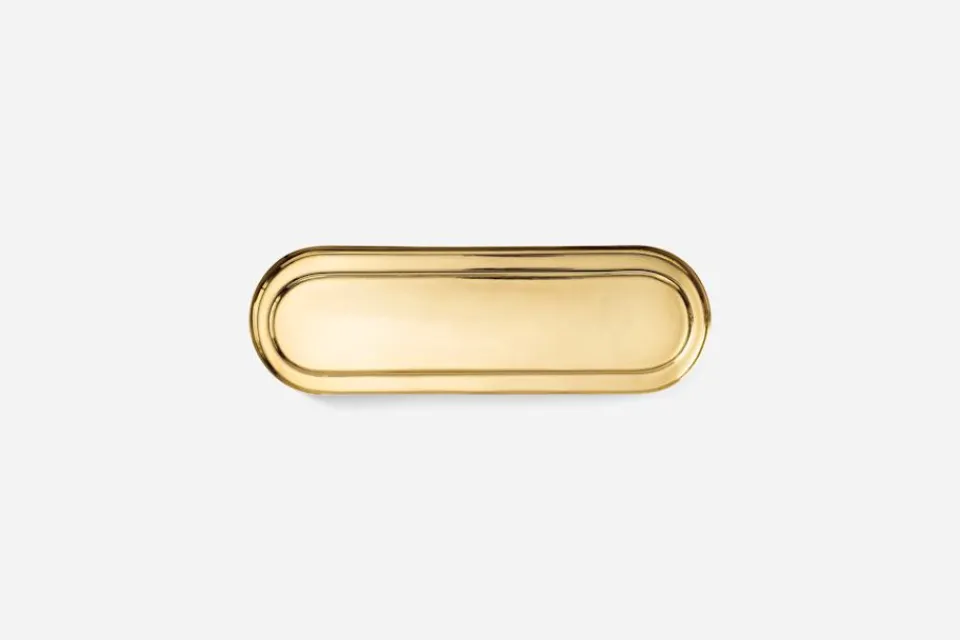 Erika Pekkari har formgivit Kruka Svenskt Tenn i stengods med tillhörande, dekorativa mässingsfat.