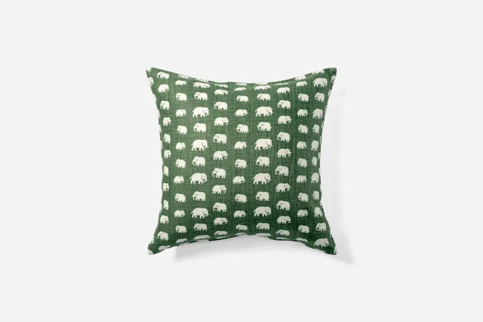 Svenskt Tenns klassiska kuddar är omtyckta världen över; från Stockholm till New York och Shanghai. Denna kudde i linnekretong har mönstret Elefant. Svenskt Tenns grundare Estrid Ericson reste mycket till olika platser runt om i världen. Hon letade alltid efter vackra föremål, textilier och souvenirer att ta hem och sälja i butiken på Strandvägen. Det var efter en förlaga från Belgiska Kongo som hon formgav mönstret med de små elefanterna. Svenskt Tenn tryckte textil Elefant för första gången i slutet av 1930-talet.