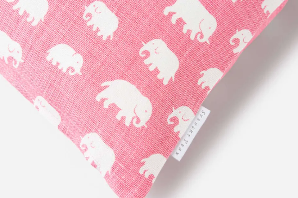 Svenskt Tenns klassiska kuddar är omtyckta världen över; från Stockholm till New York och Shanghai. Denna kudde i linnekretong har mönstret Elefant.
