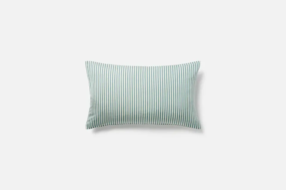 Elegant soffkudde i den randiga textilen Moire Stripe av Helene Blanche. Kudden har en klassisk elegans men samtidigt en modern känsla. Den unika sammansättningen av bomull och linne gör materialet lika vackert som hållbart.