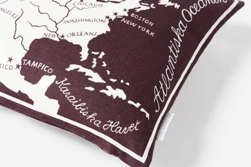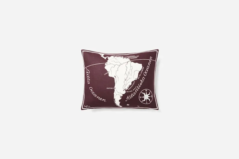 Kuddarna med Josef Franks mönster Världskartan från 1939 föreställer en värld i fred, och kontinenter utan gränser mellan länderna. De tre olika kuddarna i Svenskt Tenns sortiment bär motiv på båda sidor och kan vändas efter tycke och smak. Motiven består av Europa/Nordamerika, Europa/Afrika, Nordamerika/Sydamerika och Asien/Oceanien. Kuddarna finns i svart och lila utföranden.
