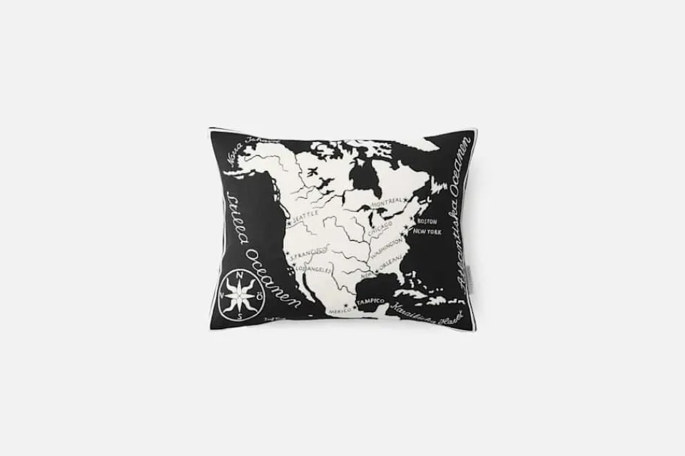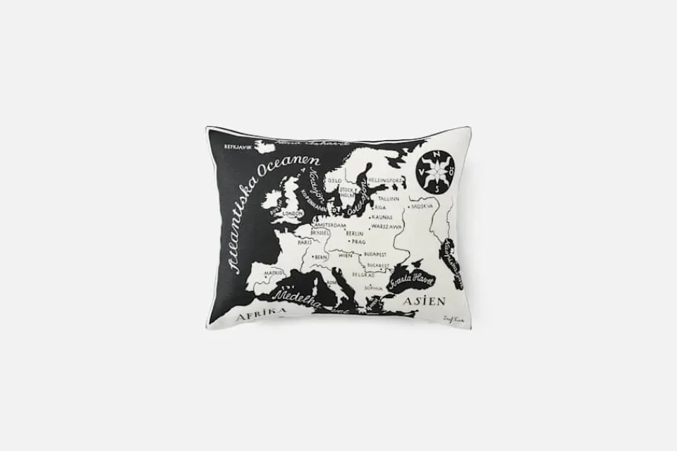 Kuddarna med Josef Franks mönster Världskartan från 1939 föreställer en värld i fred, och kontinenter utan gränser mellan länderna. De tre olika kuddarna i Svenskt Tenns sortiment bär motiv på båda sidor och kan vändas efter tycke och smak. Motiven består av Europa/Nordamerika, Europa/Afrika, Nordamerika/Sydamerika och Asien/Oceanien. Kuddarna finns i svart och lila utföranden.