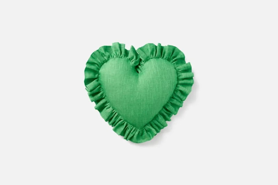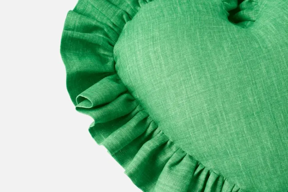 De lekfullt hjärtformade linnekuddarna sys för hand efter en idé och vision av formgivaren Margherita Maccapani Missoni. Denna kudde är sydd i Svenskt Tenns eget linnetyg i färgen Jadegrön.
