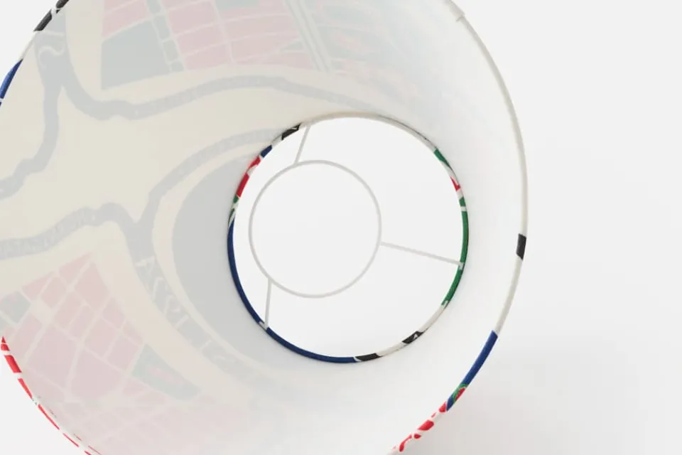 Josef Frank formgav en lampskärm till varje modell av sina lampor. Ursprungligen var de alla i vit textil, men Estrid Ericson lät senare sy upp dem med mönster av Josef Frank och andra formgivare. Denna lampskärm i linnekretong har mönstret Svenskt Tenn Est. 1924. Mönstret gick ursprungligen under namnet “Stockholm” när det formgavs av Josef Frank omkring 1949 – 1950. Motivet visar en Stockholmskarta, med utvalda platser som Folkungagatan, Karlavägen, Drottninggatan och Mynttorget. Till Svenskt Tenns hundraårsjubileum 2024 har texten Svenskt Tenn Est. 1924 adderats i textremsorna som flätar samman motivet: en hyllning till de 100 år under vilka företaget funnits och verkat i centrum av den svenska och internationella designscenen.
