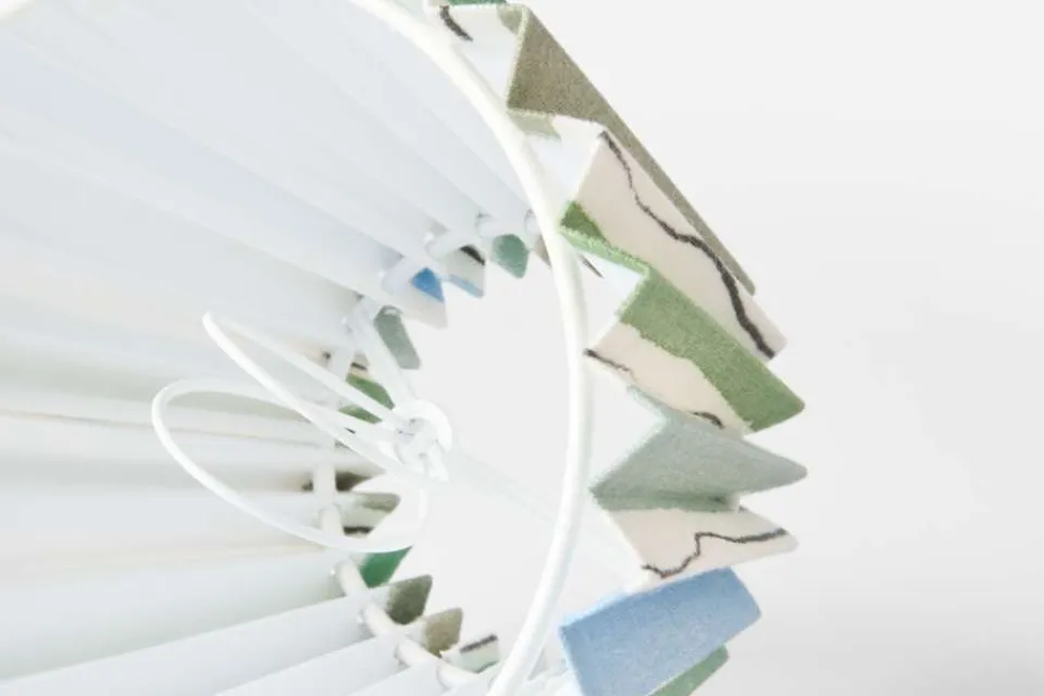 Josef Frank formgav en lampskärm till varje modell av sina lampor. Ursprungligen var de alla i vit textil, men Estrid Ericson lät senare sy upp dem med mönster av Josef Frank och andra formgivare. Denna lampskärm i har mönstret Wisteria.