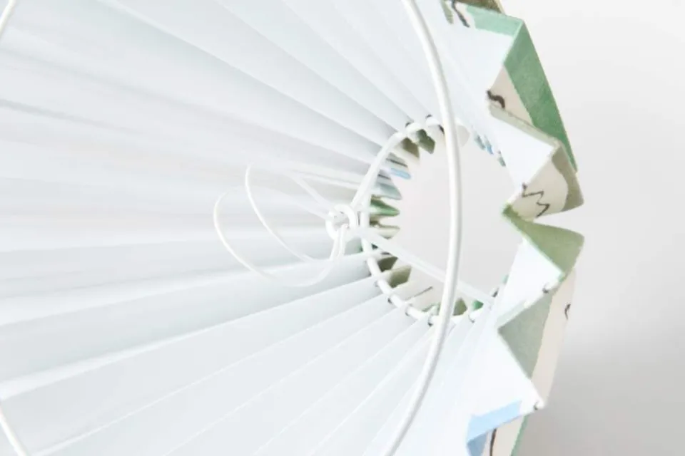 Josef Frank formgav en lampskärm till varje modell av sina lampor. Ursprungligen var de alla i vit textil, men Estrid Ericson lät senare sy upp dem med mönster av Josef Frank och andra formgivare. Denna lampskärm i har mönstret Wisteria.