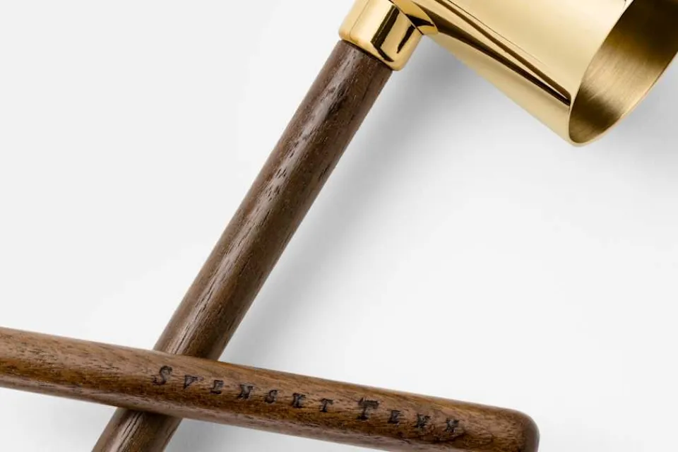 Formgivaren Daniel Enoksson har alltid varit fascinerad av gamla bruksföremål med en tydlig funktion. Nu har han formgivit en klassisk ljussläckare, exklusivt för Svenskt Tenn. Materialmötet står i fokus i den avskalade och gracila formen. Mässingen åldras vackert och tål samtidigt ljusets hetta, medan valnötsträet ger skaftet en varm och taktil känsla.