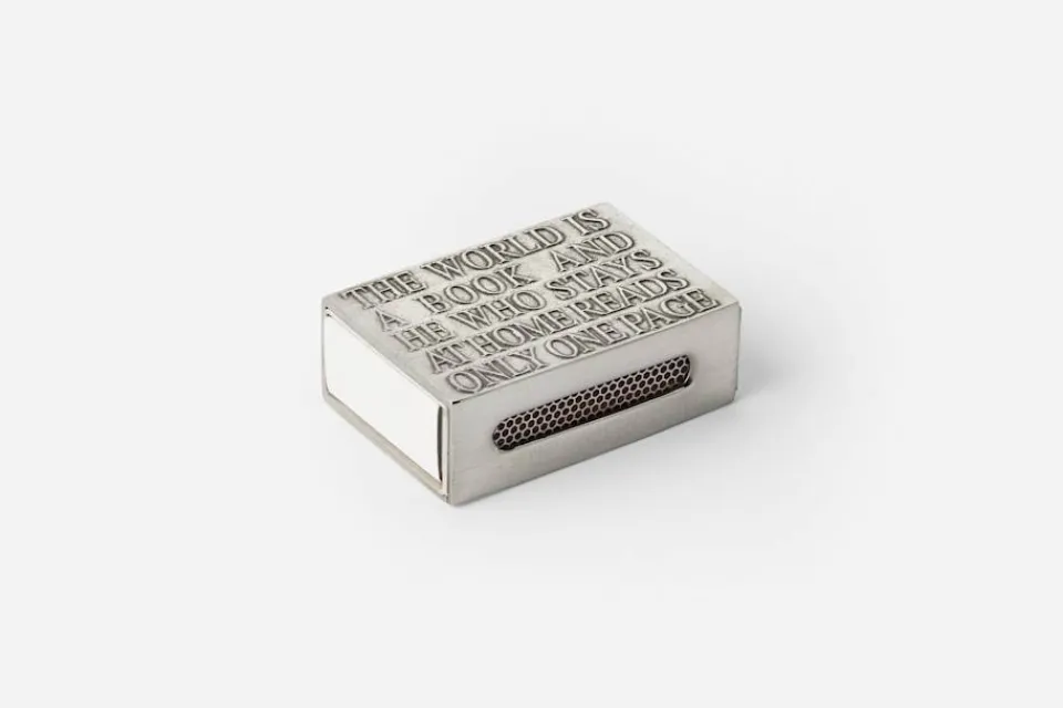 Estrid Ericson hämtade uppslag och inspiration från litterära miljöer för sina interiörer. Sentensen “The world is a book and he who stays at home read only one page” på tändsticksasken i tenn härrör troligen från den helige Augustinus. Detta var ett av Estrid Ericsons favoritcitat, då resor kom att bli en av hennes främsta inspirationskällor.