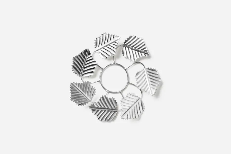 Naturen tog sig ständigt nya skepnader i Estrid Ericsons skaparhänder. Som en hyllning till hennes kreativitet har Svenskt Tenn tagit fram tre dekorationskransar. De spröda löven är böjbara så att varje ljusmanschett kan formas unikt.