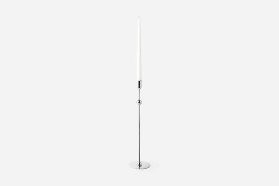 Belysningen vid ett matbord var viktigt för Estrid Ericson, som i ett radioföredrag från 1951 sa att ljusstakarna skall vara höga för att inte ljuset ska komma underifrån, då detta ger ett ofördelaktigt utseende åt gästerna. Denna försilvrade ljusstake har Estrid Ericson formgivit efter denna tanke.
