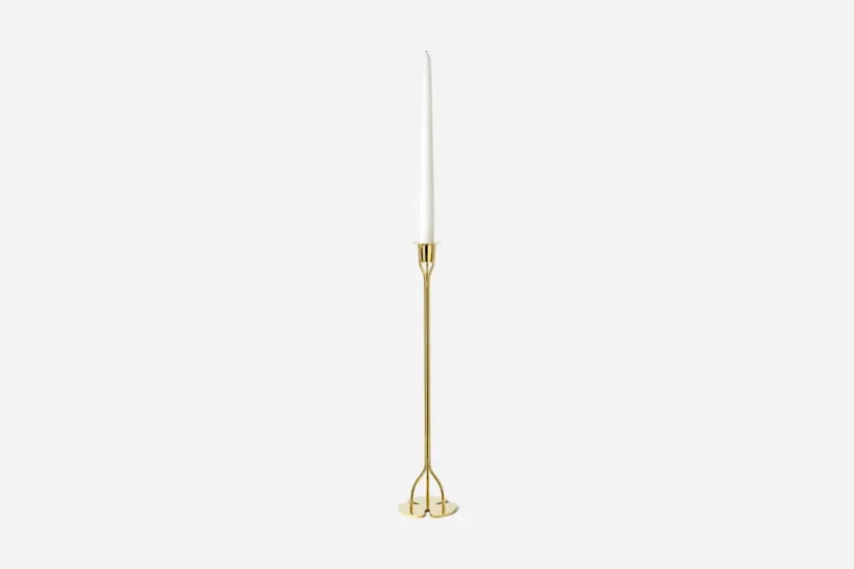 Denna mässingsljusstake är ett tydligt exempel på hur naturen med sina organiska former alltid varit en stor inspirationskälla för Josef Frank. Från klöverformen i foten har Josef Frank sammanfogat tre tunna ben som med en raffinerad enkelhet bär upp ljushatten.