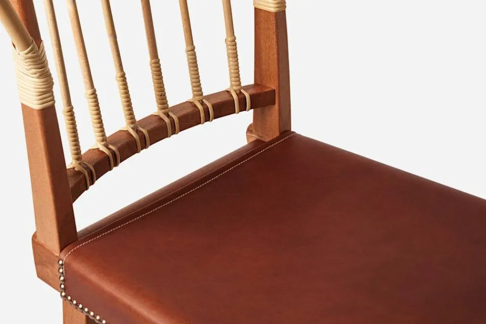 Stomme av maghogny med rotting i ryggen. Lädersits med underväv.