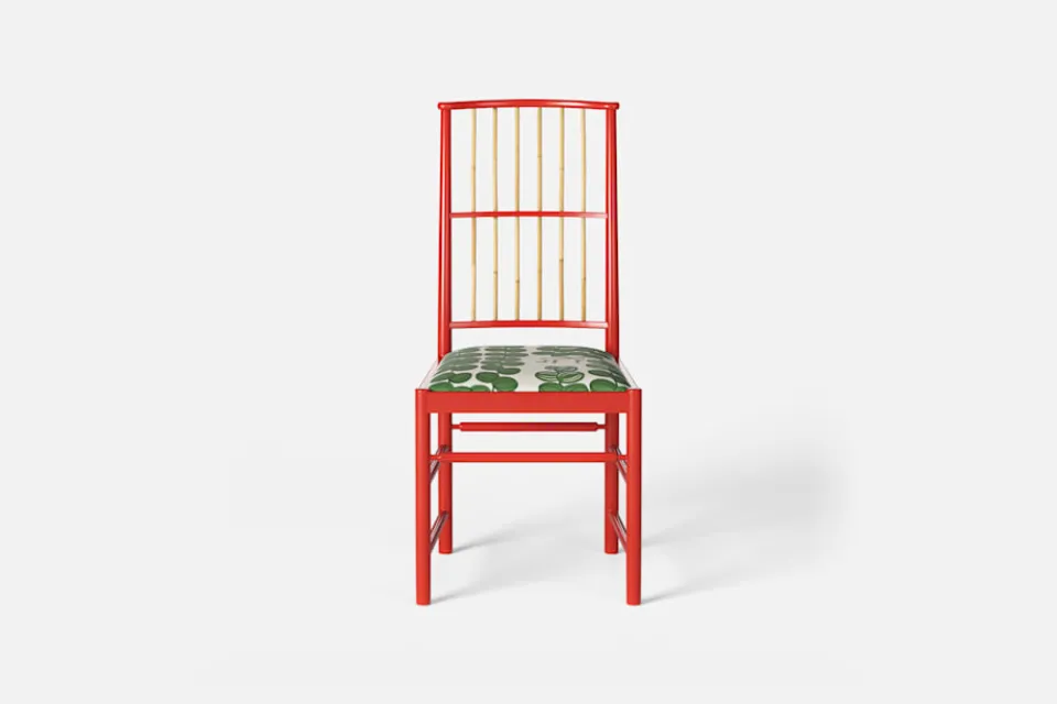 Josef Frank ansåg att en matsalsstol skall vara så lätt att den kan lyftas med ett finger och att användaren lätt bör kunna flytta stolen i rummet. Han formgav denna gracila stol år 1925 för sitt företag Haus und Garten i Wien. För att skapa spänning i formen valde Josef Frank ofta att blanda olika träslag och material, så även i denna klassiska stol.