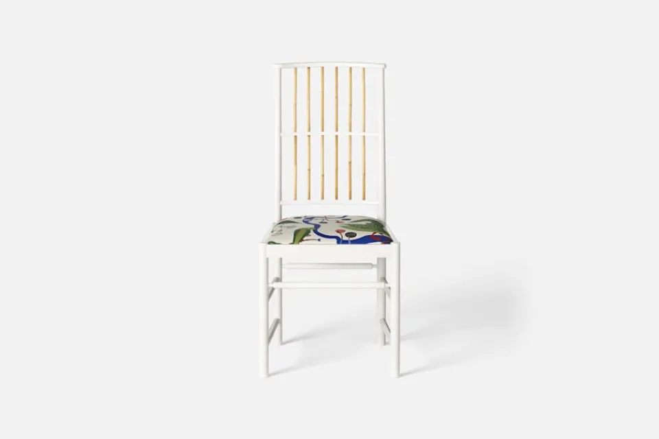 Josef Frank ansåg att en matsalsstol skall vara så lätt att den kan lyftas med ett finger och att användaren lätt bör kunna flytta stolen i rummet. Han formgav denna gracila stol år 1925 för sitt företag Haus und Garten i Wien. För att skapa spänning i formen valde Josef Frank ofta att blanda olika träslag och material, så även i denna klassiska stol.