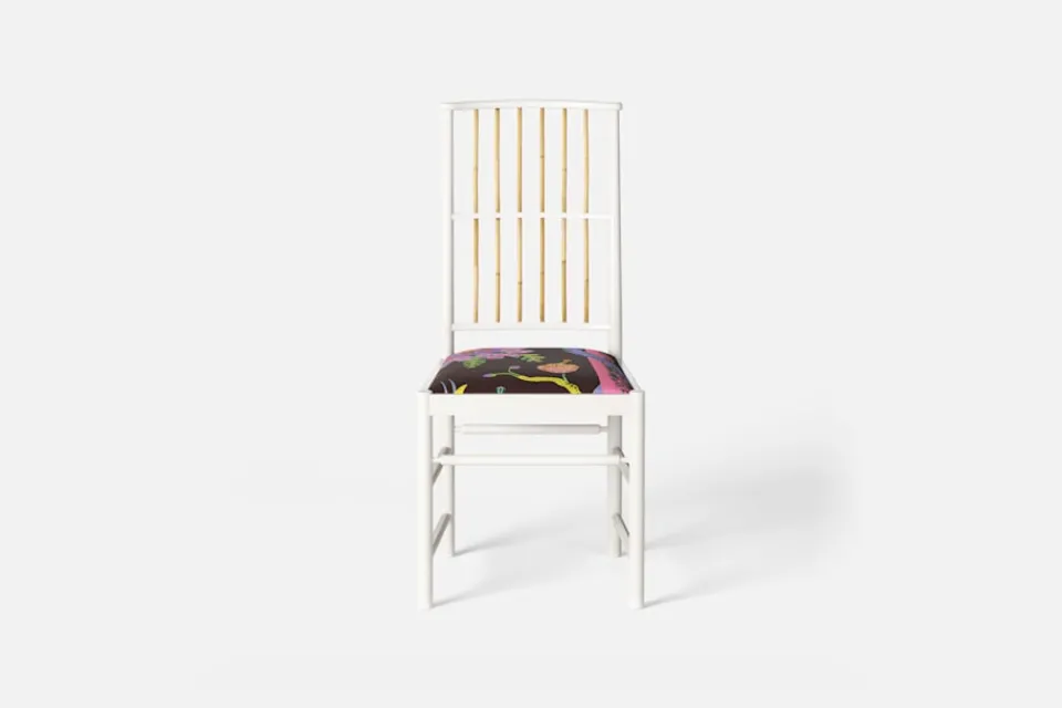 Josef Frank ansåg att en matsalsstol skall vara så lätt att den kan lyftas med ett finger och att användaren lätt bör kunna flytta stolen i rummet. Han formgav denna gracila stol år 1925 för sitt företag Haus und Garten i Wien. För att skapa spänning i formen valde Josef Frank ofta att blanda olika träslag och material, så även i denna klassiska stol.