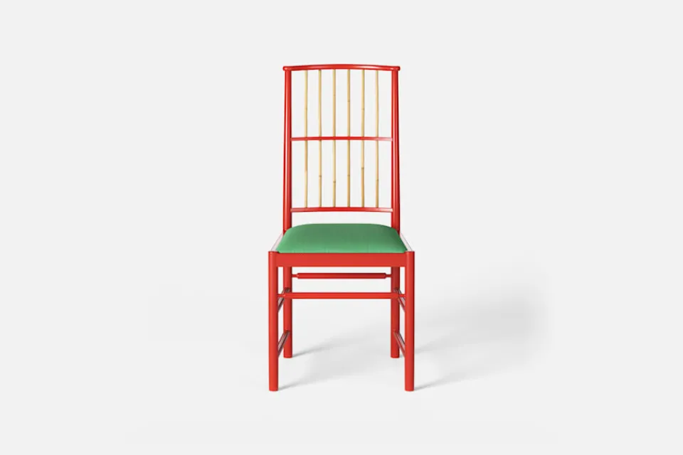 Josef Frank ansåg att en matsalsstol skall vara så lätt att den kan lyftas med ett finger och att användaren lätt bör kunna flytta stolen i rummet. Han formgav denna gracila stol år 1925 för sitt företag Haus und Garten i Wien. För att skapa spänning i formen valde Josef Frank ofta att blanda olika träslag och material, så även i denna klassiska stol.