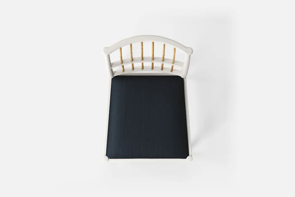 Josef Frank ansåg att en matsalsstol skall vara så lätt att den kan lyftas med ett finger och att användaren lätt bör kunna flytta stolen i rummet. Han formgav denna gracila stol år 1925 för sitt företag Haus und Garten i Wien. För att skapa spänning i formen valde Josef Frank ofta att blanda olika träslag och material, så även i denna klassiska stol.