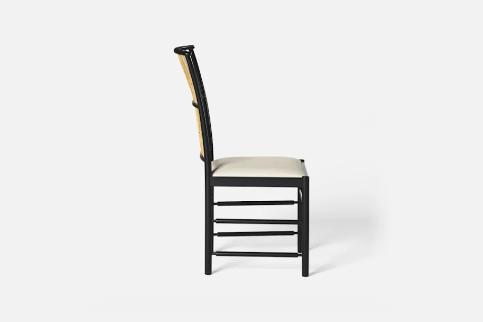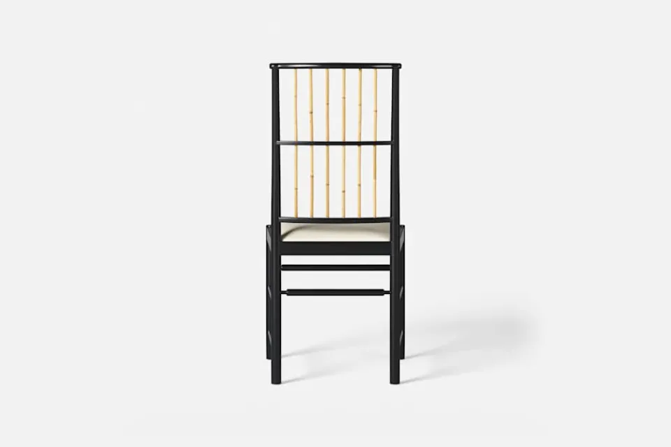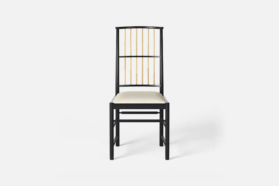 Josef Frank ansåg att en matsalsstol skall vara så lätt att den kan lyftas med ett finger och att användaren lätt bör kunna flytta stolen i rummet. Han formgav denna gracila stol år 1925 för sitt företag Haus und Garten i Wien. För att skapa spänning i formen valde Josef Frank ofta att blanda olika träslag och material, så även i denna klassiska stol.