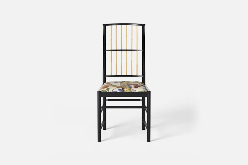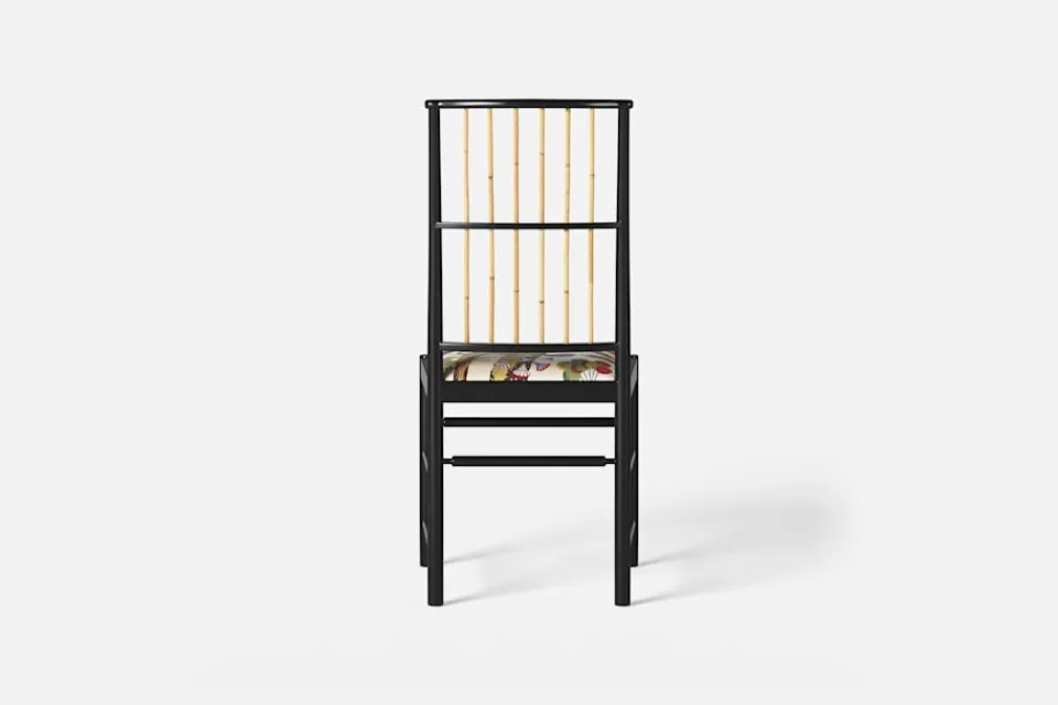 Josef Frank ansåg att en matsalsstol skall vara så lätt att den kan lyftas med ett finger och att användaren lätt bör kunna flytta stolen i rummet. Han formgav denna gracila stol år 1925 för sitt företag Haus und Garten i Wien. För att skapa spänning i formen valde Josef Frank ofta att blanda olika träslag och material, så även i denna klassiska stol.