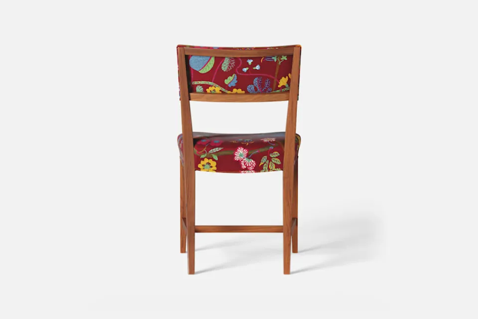 Stol 695 formgavs av Josef Frank år 1935. Hans filosofi var att möblerna skulle ge användaren maximal bekvämlighet och stol 695 har därför en omsorgsfullt stoppad ryggdyna.