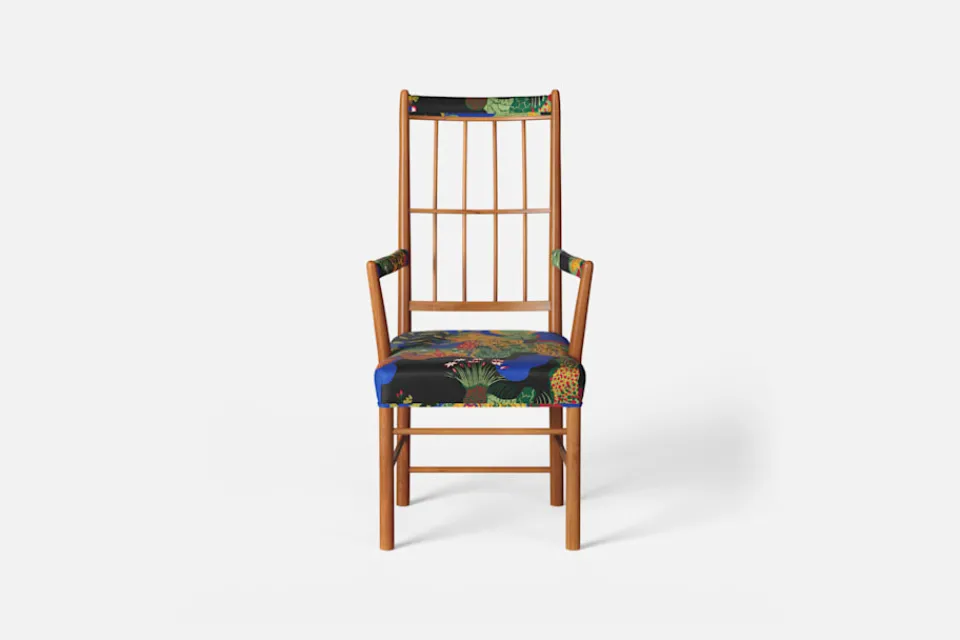 Karmstol 652 formgav Josef Frank 1936, och tre år senare användes den i interiören vid Golden Gate-utställningen i San Fransisco. Den eleganta karmstolen har en hög genombruten rygg av runda svarvade pinnar sammanbundna av en tvärslå, vilket bildar ett geometriskt luftigt mönster. För att skapa en spänning i formen valde Josef Frank ofta att blanda olika träslag och material.